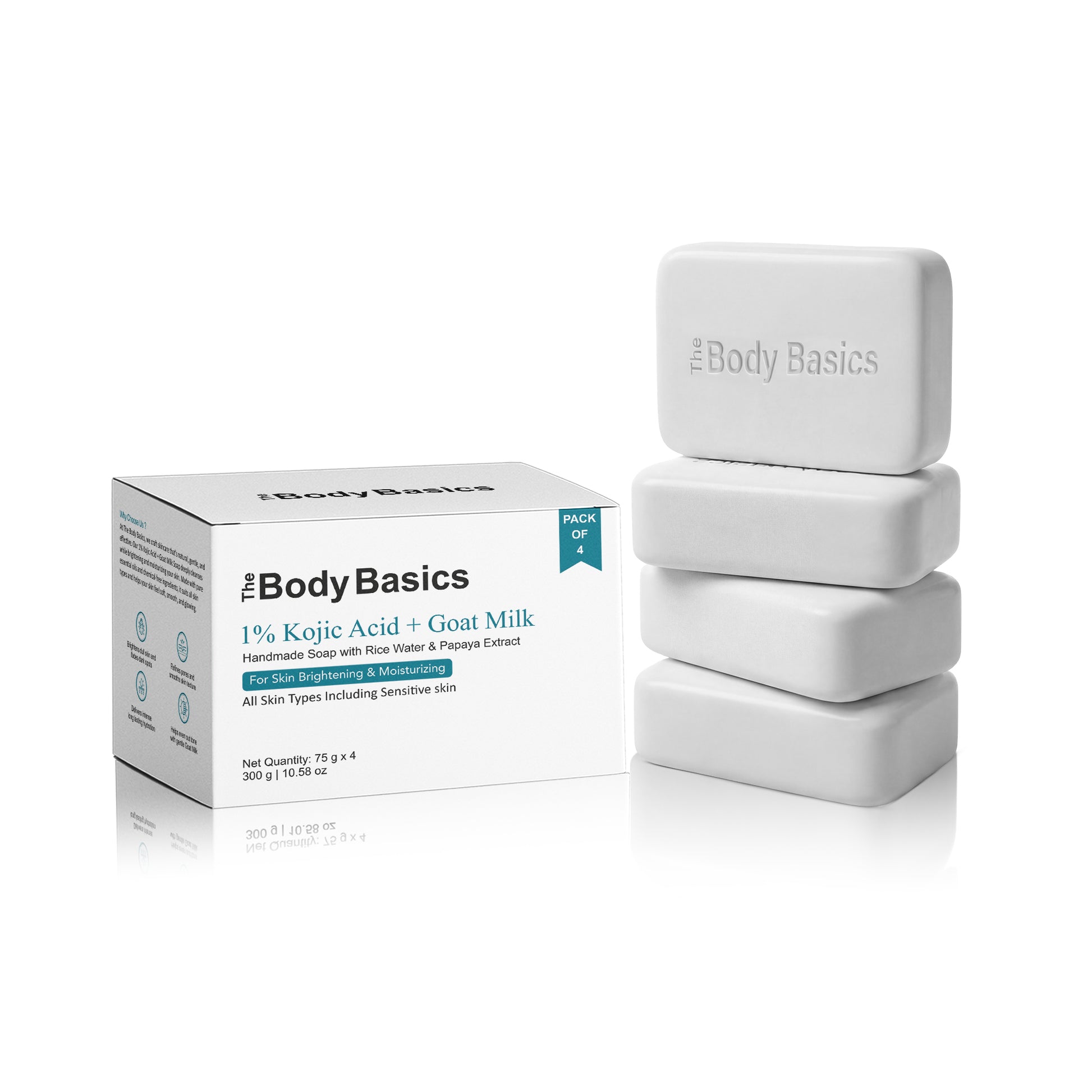 1% Kojic Acid + Goat Milk Handmade Soap - Skin Brightening & Moisturizing - Pack of 4